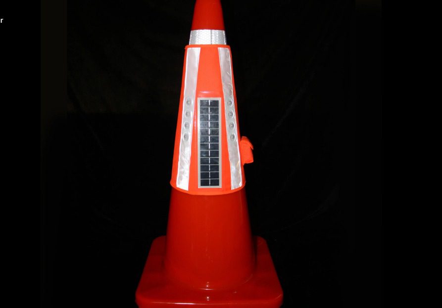 Acessório de sinalização autônomo projetado para ser acoplado em cones de tráfego, transformando-os em dispositivos luminosos ativos. Ideal para sinalização noturna e de emergência sem necessidade de baterias externas ou fiação.